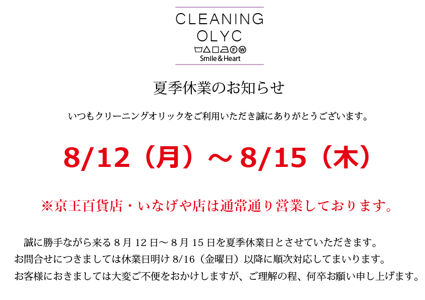 夏季休業日のおしらせ