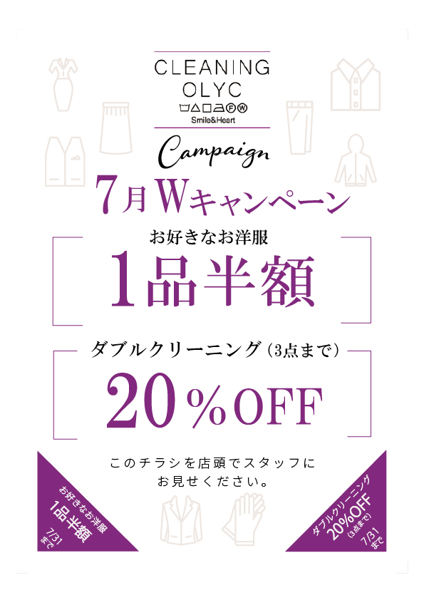 早くも熱い夏に、着心地すっきり。Wクリーニングキャンペーン!