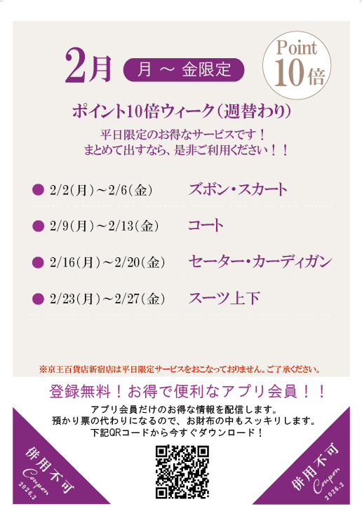 2月はお洋服3点まで30%OFF!!お得キャンペーン