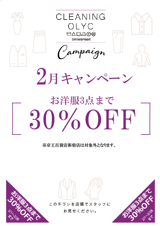 お洋服3点まで 30%OFF のクリーニングキャンペーンを行います。