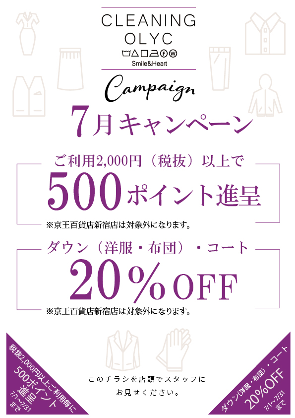 7月も500ポイント進呈&ダウン製品のWキャンペーン!!