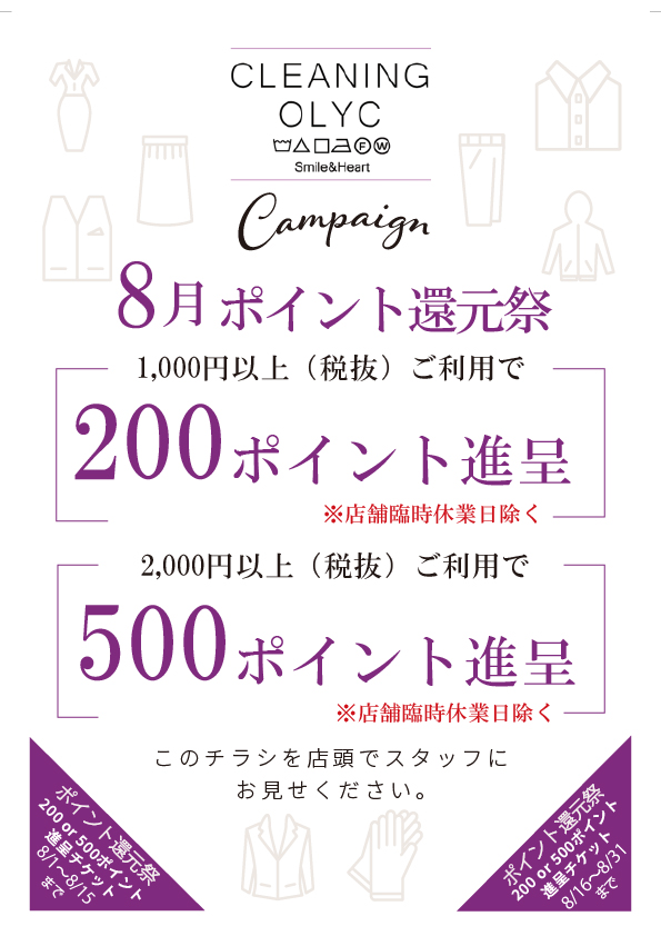 今月はポイント還元祭!店舗までの道中、とてもお暑いと思いますが、まめな水分補給を取っていただき、店内快適な環境で皆さまのご来店を心よりお待ちしております。